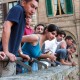 - Sprinkle a thin, even layer of sugar over the filling, trying to avoid getting it on the crust. Make sure nothing flammable is anywhere near your pan. Using a kitchen torch, heat the sugar until it melts and caramelizes, forming a deep golden brown crust. I adjust the flame to be about 3 inches long and move it slowly in a loop-de-loop pattern across the surface to avoid burning any particular area too much. If desired, let cool for five minutes, sprinkle on more sugar, and repeat for a sturdier layer of crunch. Cool for ten minutes, slice into squares, and serve as soon as possible.