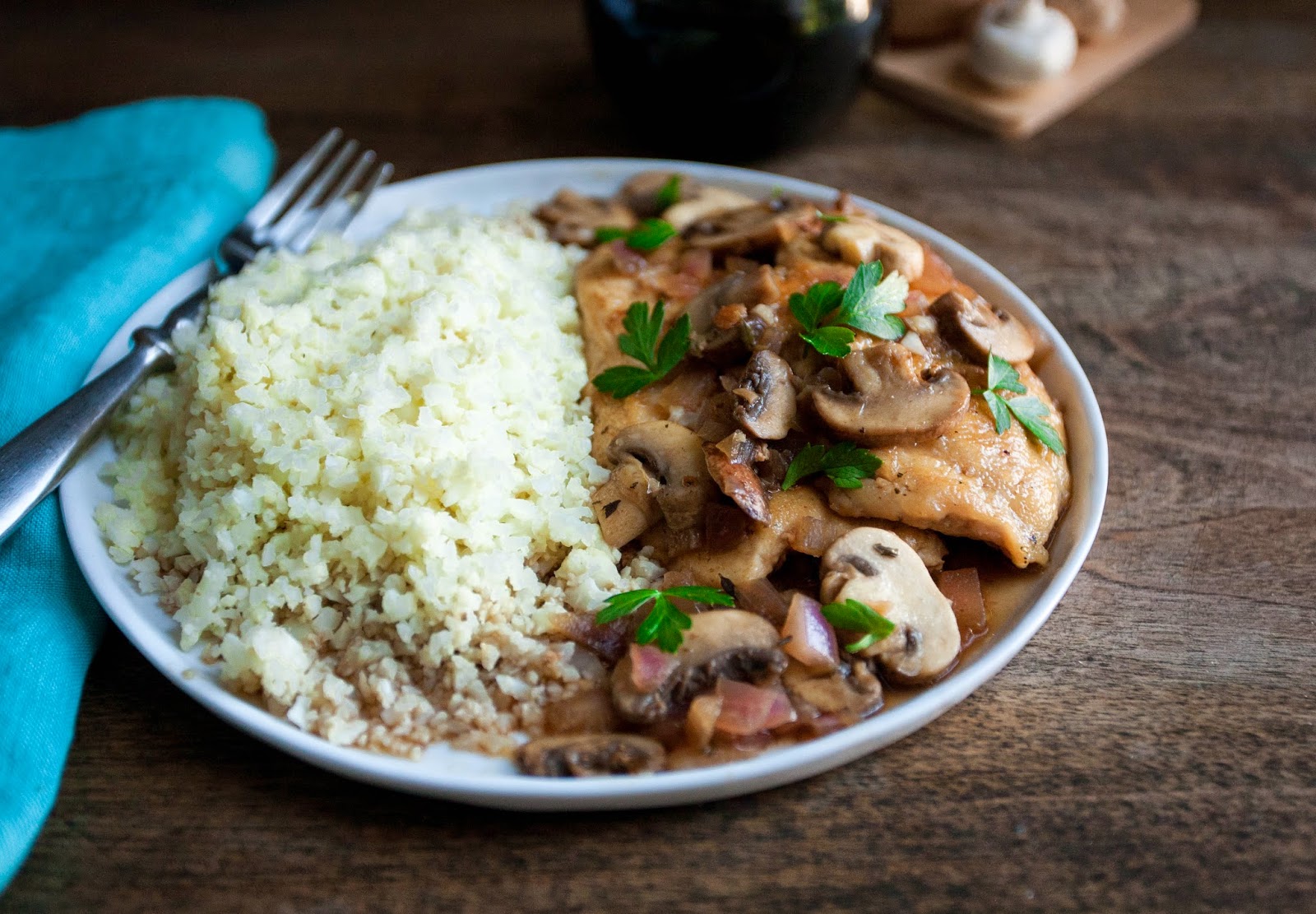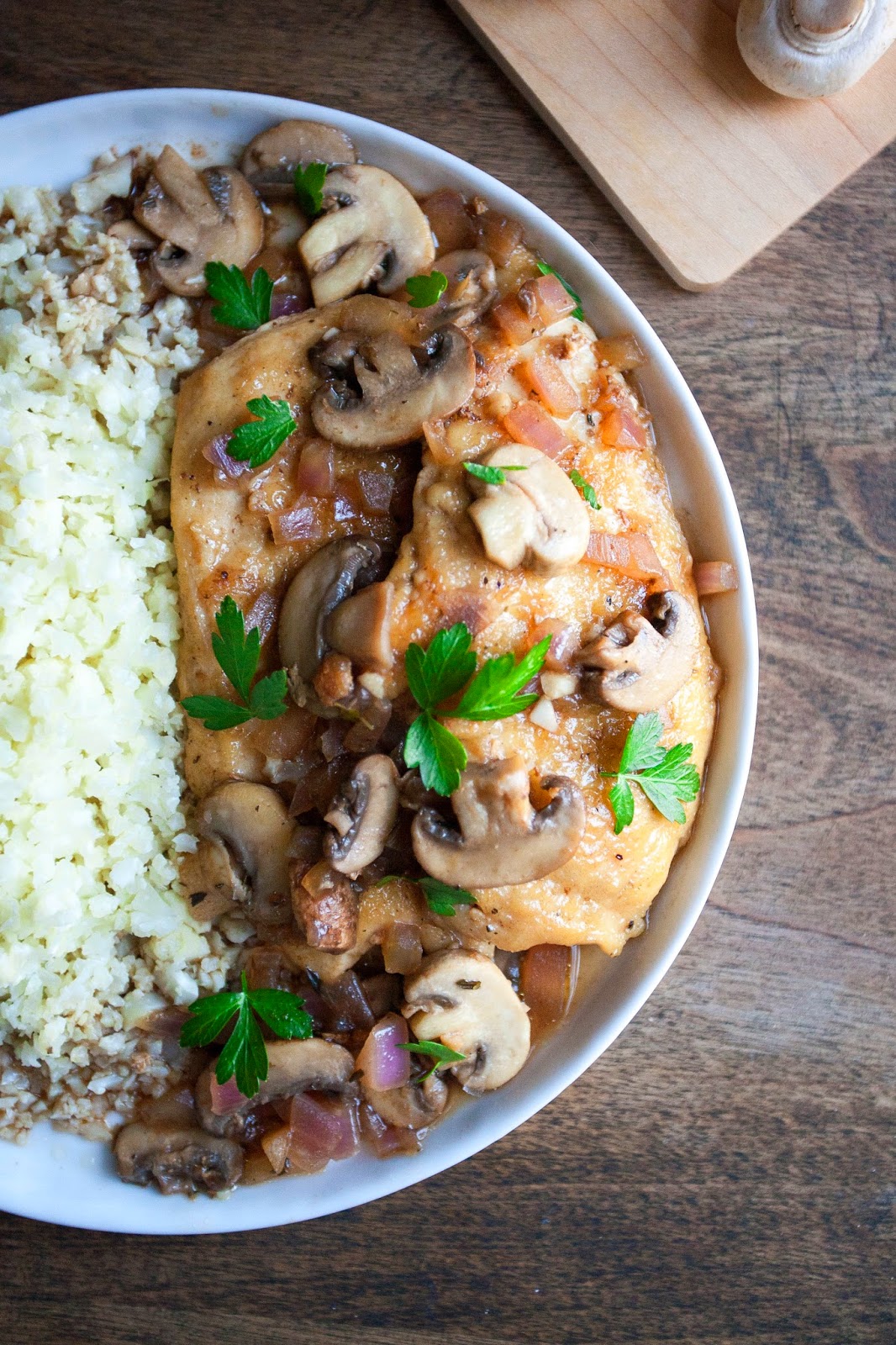 I feel comforted just looking at this dish, succulent chicken, earthy mushrooms…Heaven.