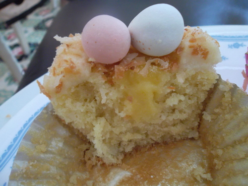 create these lemon coconut cupcakes. The bird’s nest idea comes from
