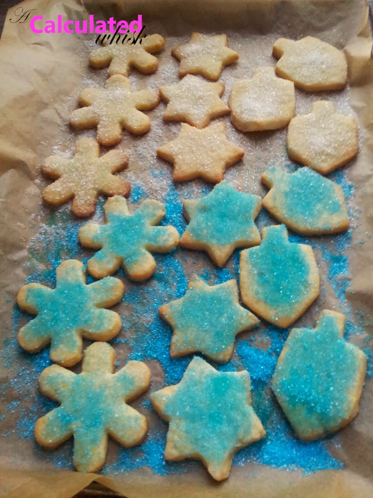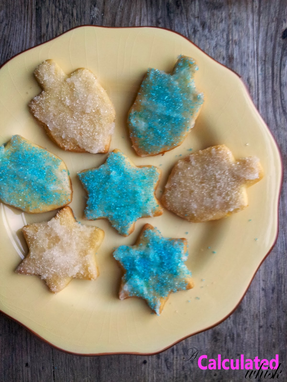 I was invited to a Hanukah party last night, and needed to bring a dessert that was nut-free and vegan. I wanted to bring a traditional Hanukah dessert, but soon realized I didn’t know of any. I guess I never really made it past the mountains of latkes at my family’s Hanukah celebrations. A quick search revealed that oily, fried foods like jelly-filled doughnuts are often eaten at Hanukah, but I wasn’t about to fry up a big pile of donuts to be eaten hours later. I also don’t really like jelly-filled desserts; I feel that jelly belongs at breakfast. Since I had dreidel and Star of David cookie cutters, I decided Hanukah sugar cookies would have to be traditional enough. I also got out my snowman and snowflake cookie cutters, since winter is almost here.