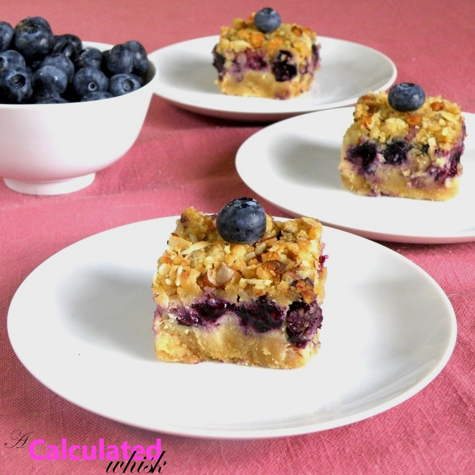 When the crust is baked, let it cool for 10-15 minutes, leaving the oven on. Then, pour the filling over, sprinkle the topping evenly over the filling, and bake for about 45 minutes, until the top is golden brown and the middle is just set. Cool completely before cutting–it helps to put them in the refrigerator to firm up. Slice into squares or rectangles and enjoy!