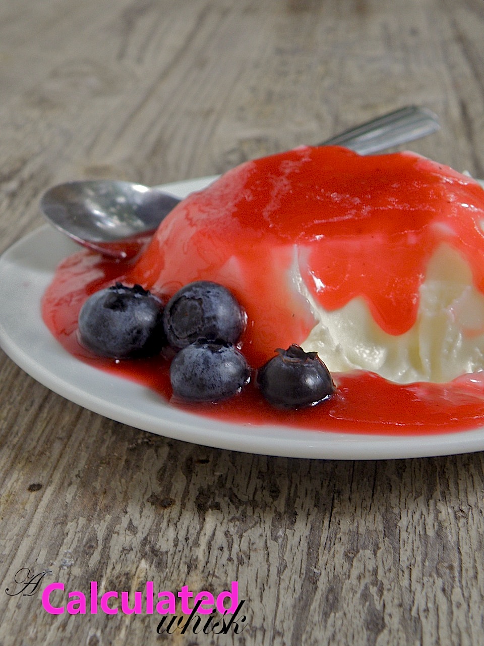 Here I’ve paired panna cotta with a delicious raspberry coulis and some fresh blueberries for a special Fourth of July treat. Panna cotta is also delicious on its own, or with chocolate sauce. There are lots of other flavors of panna cotta that I’m dying to make (well, mainly mocha!) but that’s all for another day.