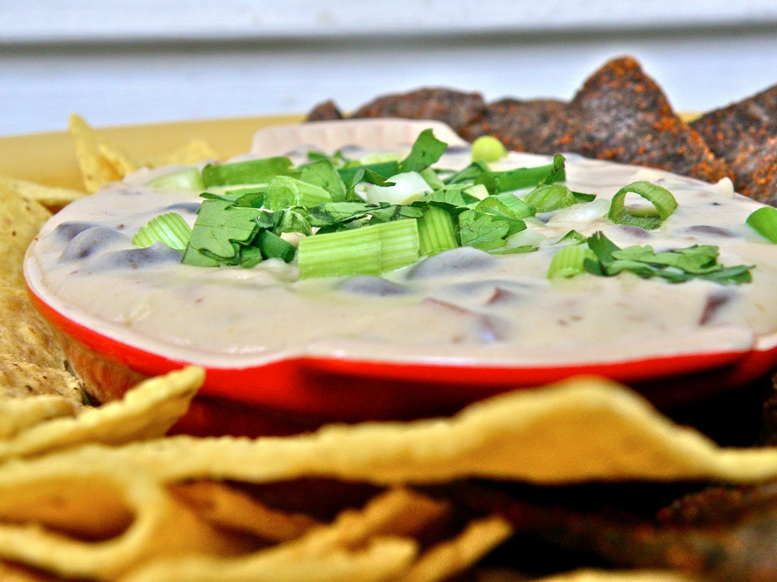 Serve with scallions and cilantro on top, and a big basket of chips for dipping.