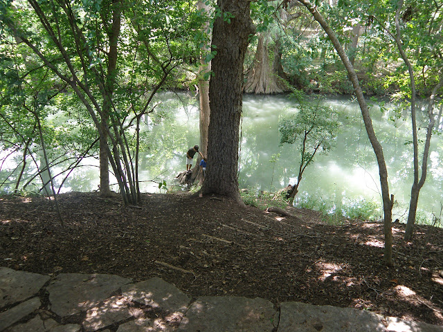 On Sunday, we drove out to Wimberley for my cousin’s wedding. It’s about an hour outside of Austin along Cypress creek. Some of my cousins own a really beautiful piece of land there where my great aunt Sada used to have a sleepaway camp for girls in the forties and fifties. My cousin and her now-husband were married outside under the pavilion, with the creek in the background. It was so pretty! Some of the trees there (like the big cypress on the other side of the river in this picture) are over 1,000 years old.